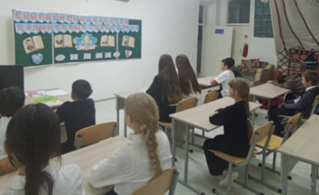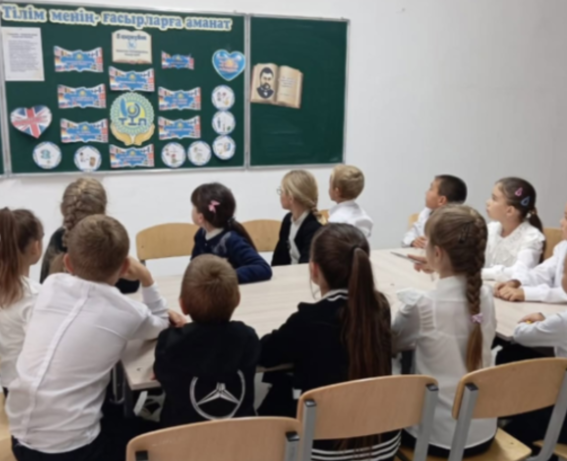 Қазақ тілі мен əдебиеті пəнінің мұғалімі Сейдахмет Қызғалдақ Қарамергенқызы 1-4 сыныптарда "Тілім менің ғасырларға аманат" тақырыбында шара өткізді.