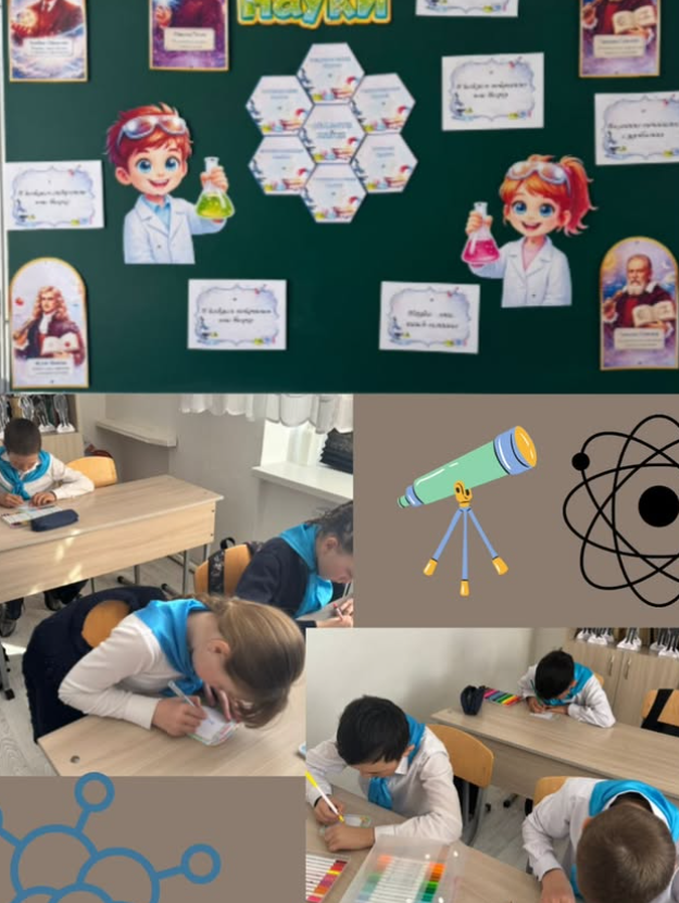5-6 сыныптарда «Ғылым әлемді ашады: қызығушылықтан жаңалыққа» тақырыбында сынып сағаты өтті.
